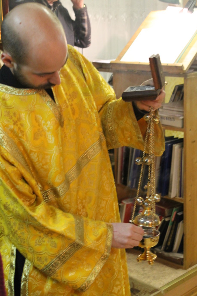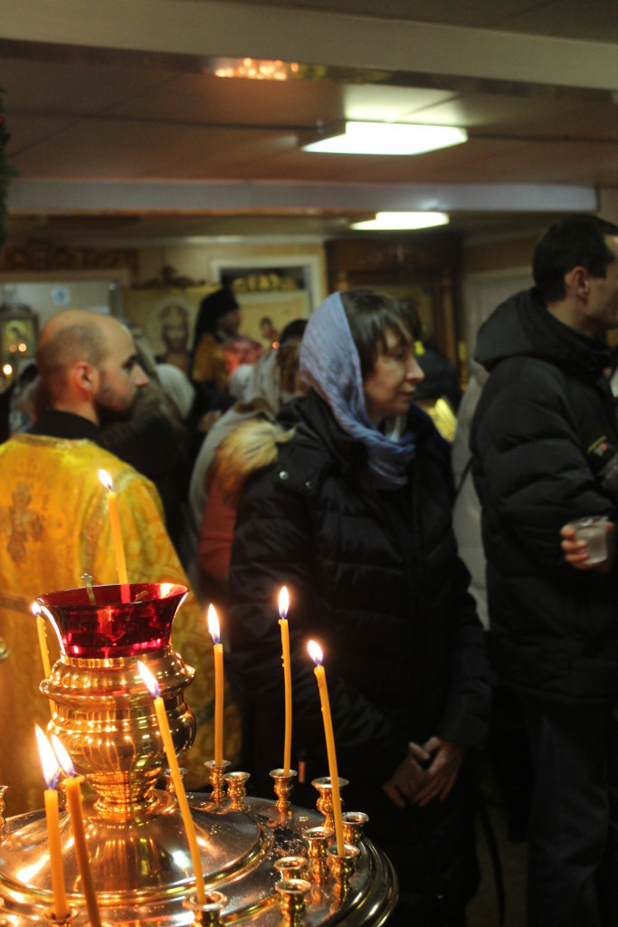 Перед началом молебна отец Онисим обратился к прихожанам с поздравлением с наступающим новым годом. «Важно, чтобы мы научились искренне любить своих ближних, прощать и терпеть их несовершенства», — сказал отец Онисим. Он выразил чаяние о том, что в новом году закончится строительство нового храма и мы сможем возносить в нем свои молитвы к Богу.