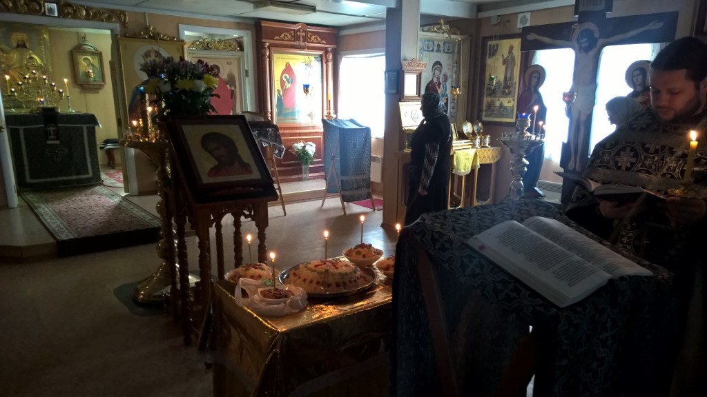 По заамвонной молитве был отслужен молебный канон вмч. Феодору Тирону на котором благословлялось коливо.
