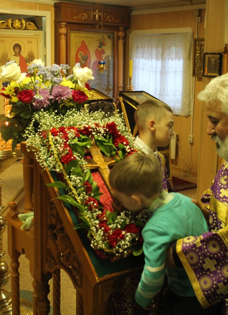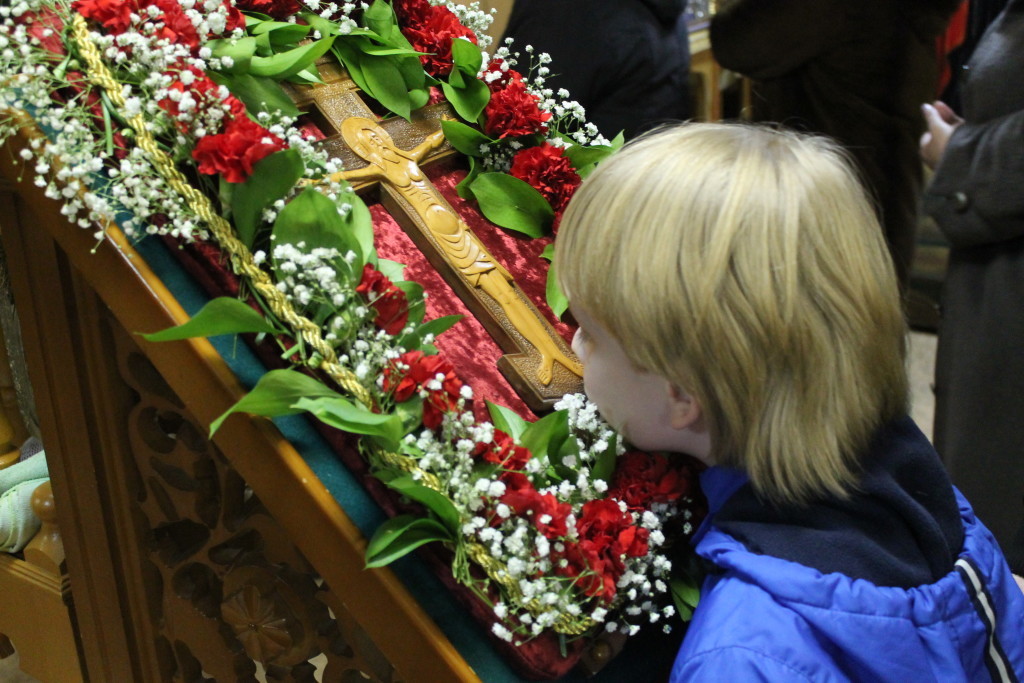 Третье воскресение поста посвящено напоминанию о грядущей Страстной Седмице и следующей за ней Пасхе Христовой. Кульминация богослужения этого вечера — чин выноса Креста, который был совершен после Великого славословия. Водрузив Крест на аналой для всеобщего поклонения, отец Онисим, духовенство и прихожане храма совершили перед крестом три земных поклона под пение «Кресту Твоему покланяемся, Владыко, и святое воскресение Твое славим».