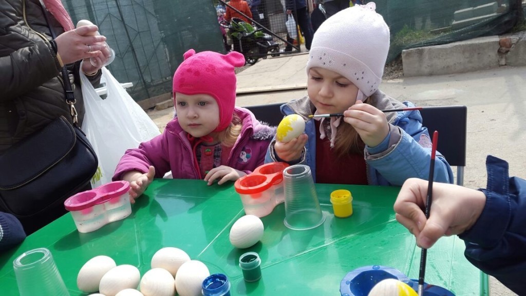 В Великую Субботу во дворе храма святого пророка Божия Илии в Северном Бутово под открытым небом для детей был устроен мастер-класс по росписи пасхальных яиц. В нем каждый мог принять участие и не просто научиться расписывать яйца, но сделать подарок своим близким собственными руками.
