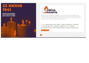 Каждый год 22 июня, в День памяти и скорби, проходит общенациональная акция «Свеча памяти» — по всей России зажигаются свечи в ночь на 22 июня в память о всех тех, кто погиб во время Великой Отечественной войны, защищая нашу мирную жизнь.